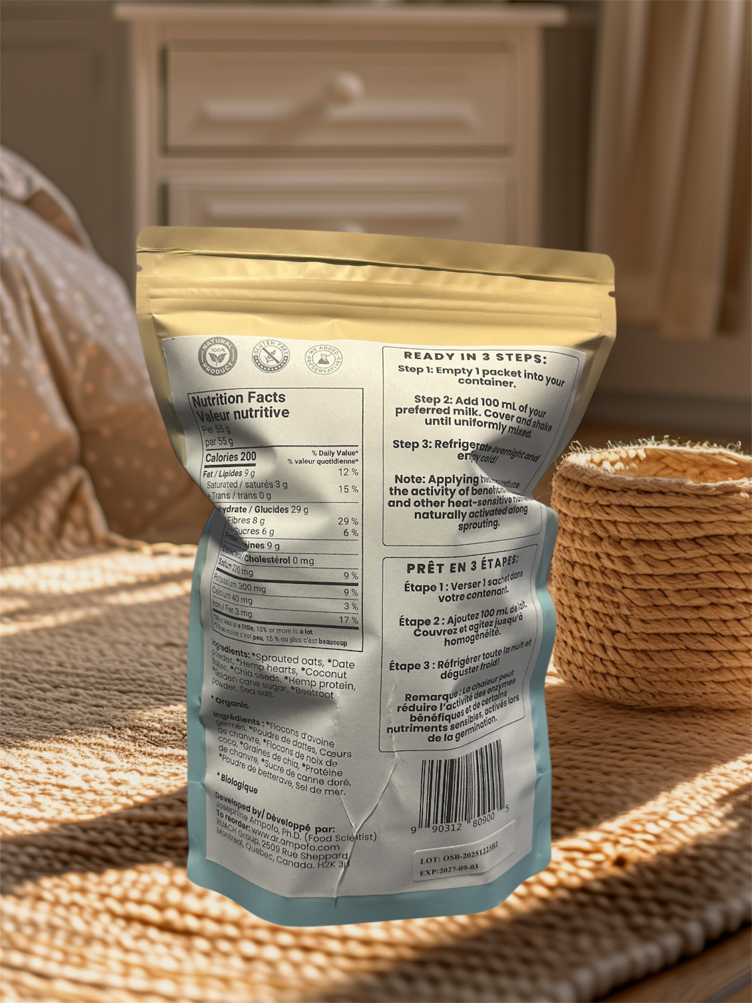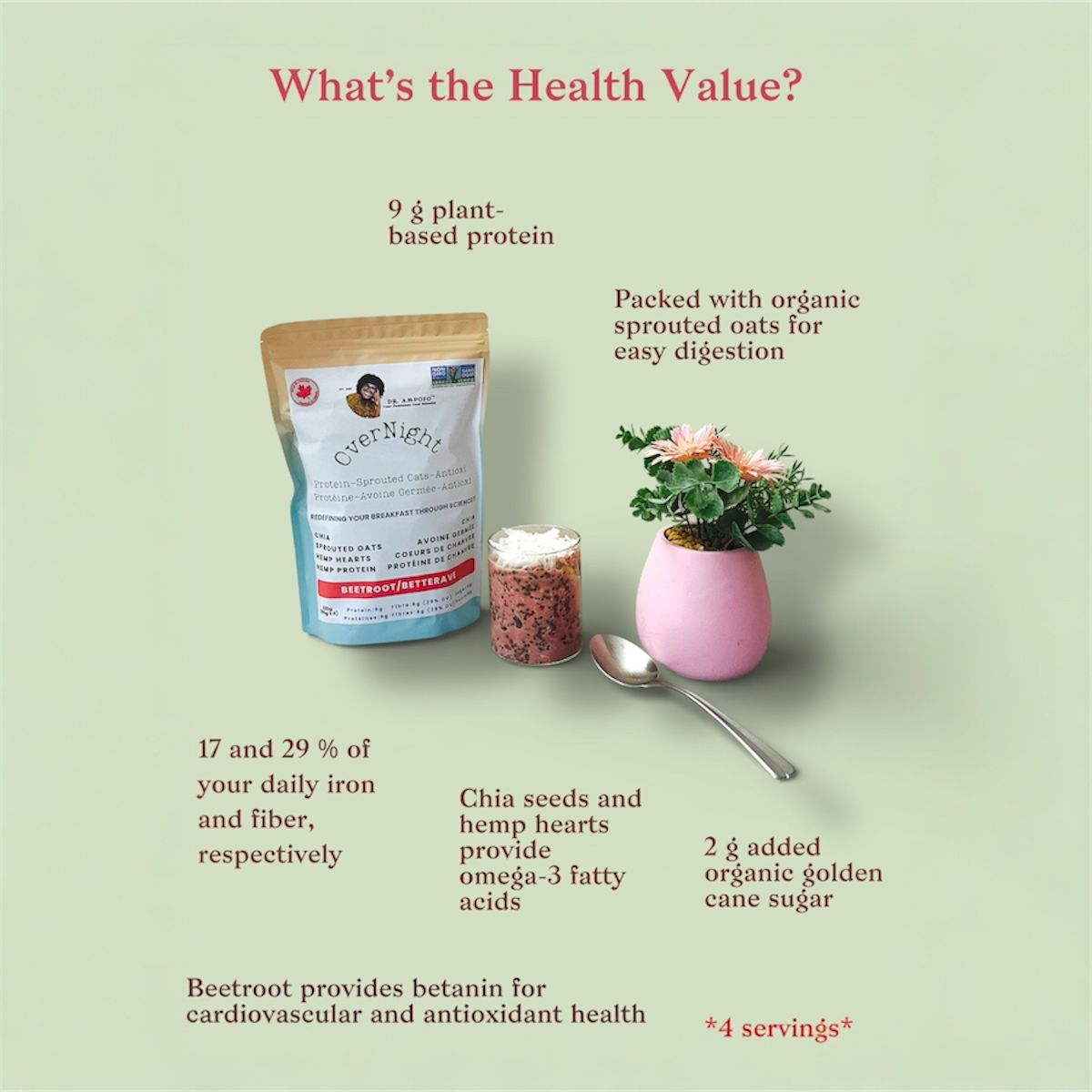 Our Sprouted Oats, Protein & Beetroot formulation is a functional, plant-based breakfast designed to deliver steady nourishment through sprouted grains, seeds, and naturally colourful plant ingredients. This blend combines sprouted oats with beetroot, seeds, and plant proteins to create a satisfying overnight meal that supports energy, digestion, and everyday balance.