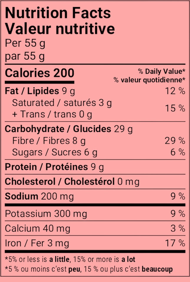 *Sprouted oats, *Date powder, *Hemp hearts, *Coconut flakes, *Chia seeds, *Hemp protein, *Golden cane sugar, *Beetroot powder, Sea salt.