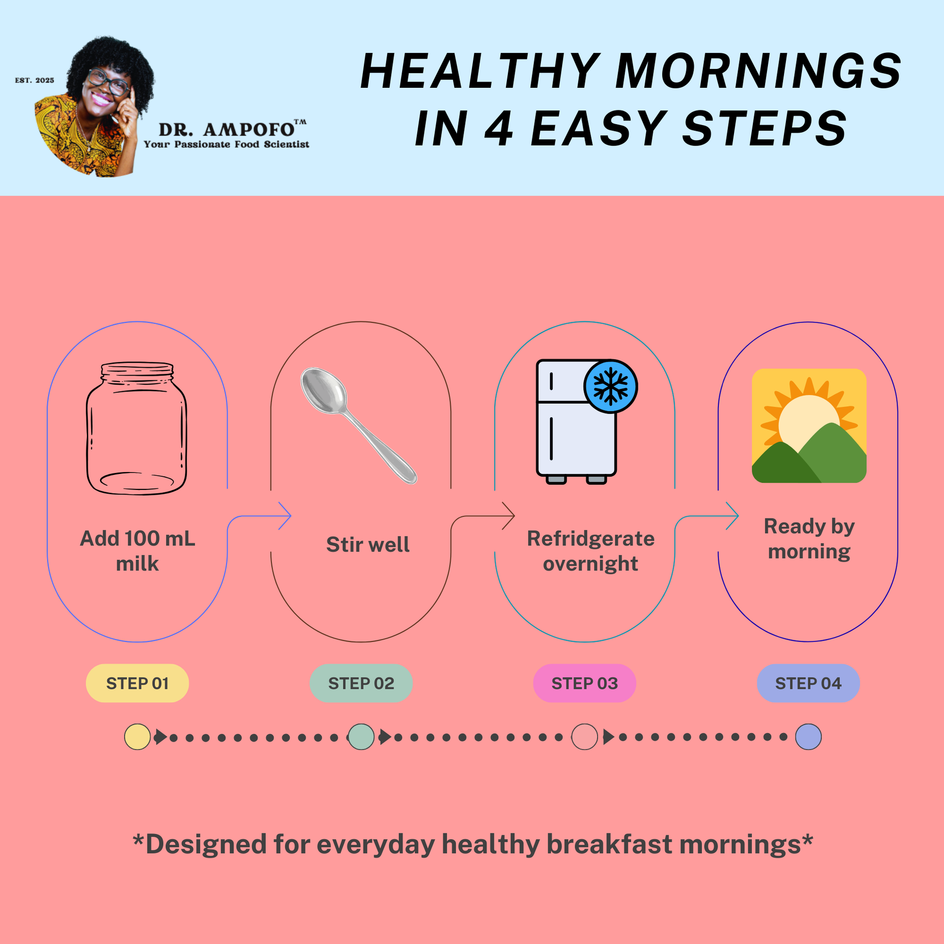 Designed for overnight soaking or quick hydration, this product offers a convenient way to enjoy protein, fibre, and whole-food carbohydrates as part of a consistent breakfast routine — without relying on highly processed cereals or sugary options.